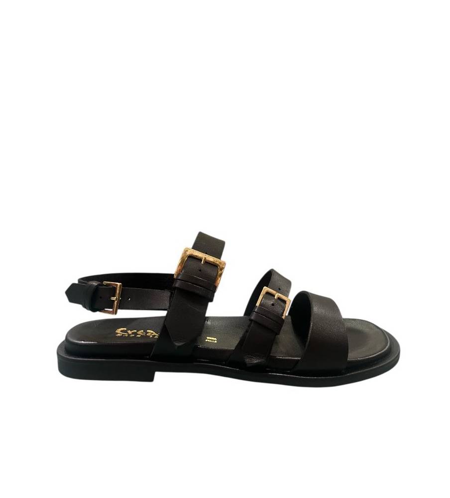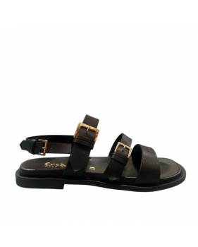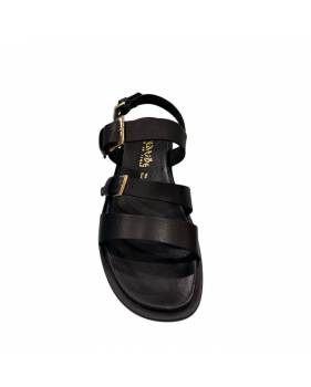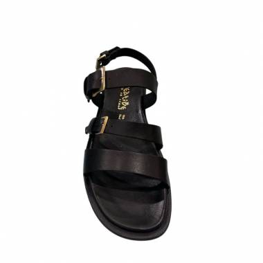 Sandalo in pelle Made in Italy con un morbido plantare in pelle fascia e cintino alla caviglia intrecciato in pelle apertura zip posteriore.