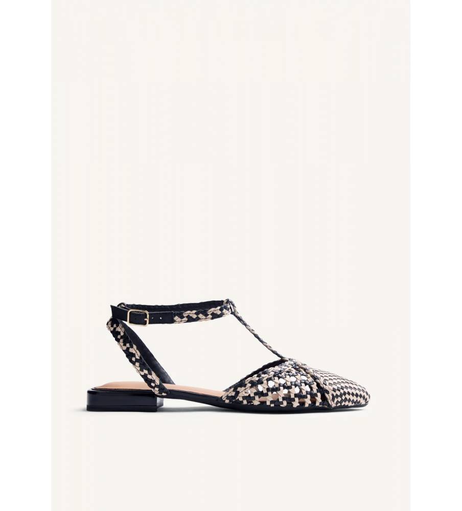 Ballerina in pelle intrecciata firmata Gioseppo, dettaglio di trecce sull'innesto.