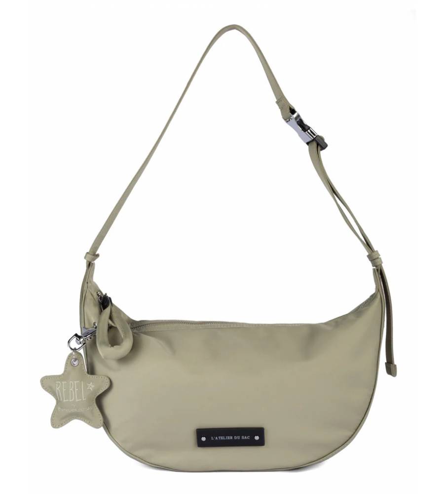 Borsa a mano con tracolla in nylon con charm personalizzato a forma di stella e scritta REBEL.