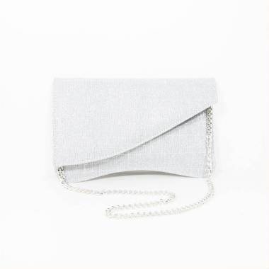 Elegante pochette realizzata in Italia in tessuto, con elegante e stilosa tracolla in metallo coordinata sia con il materiale esterno della borsa ma facilmente abbinabile alle serate eleganti di ogni genere.