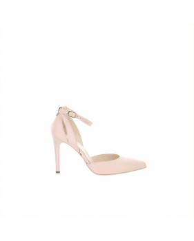 Décolleté rosa cipria con tomaia e interno in pelle, cinturino alla caviglia, fondo in gomma con tacco alto 9.5cm. Raffinatezza ed eleganza. Made in Italy.