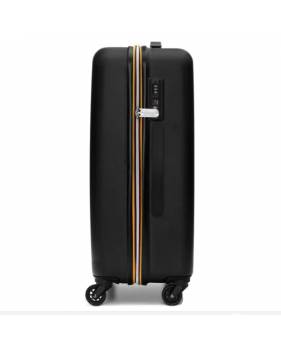 Trolley rigido a 4 ruote con cinghie fermabiti nel comparto inferiore e tasca a rete con zip nel comparto superiore